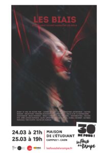 Tom Clotet, Elise Fischbach, Abel Garnier Van Rogger, Inès Lecoq-Dupuich, Zélie Poisson – Mise En Scène Et Écriture : Lison Deluen – Régie Lumière : Lisa Duhamel – Régie Son : Ida Fontaine-Rebière.